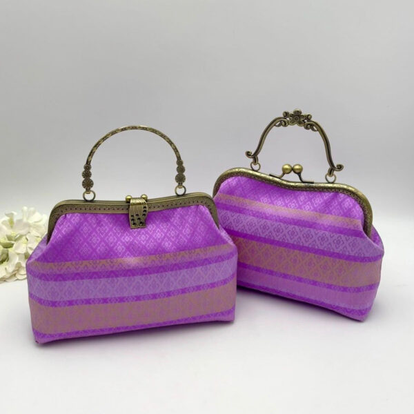 กระเป๋าผ้าไหมสีม่วง รุ่นใบกลางหูดอกไม้