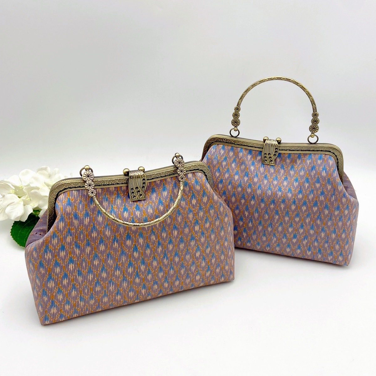 กระเป๋าผ้าไหมสีน้ำเงิน รุ่นใบกลางหูดอกไม้