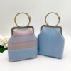 กระเป๋าผ้าไหมสีฟ้าชมพู ใบกลางหูดอกไม้