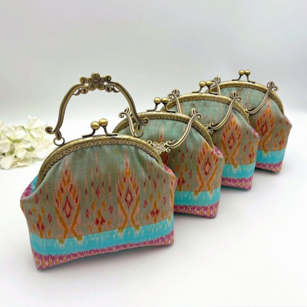 กระเป๋าผ้าไหมสีเขียวฟ้า ใบกลางหูดอกไม้