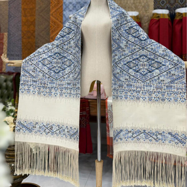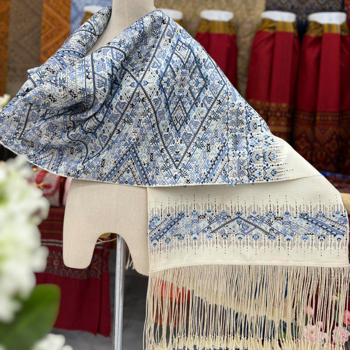-ผ้าที่จกเกาะรอบเดียวด้วยไหมสี่เส้น -ผ้าคุมไหล่หรือคล้องคอไหมแพรวา