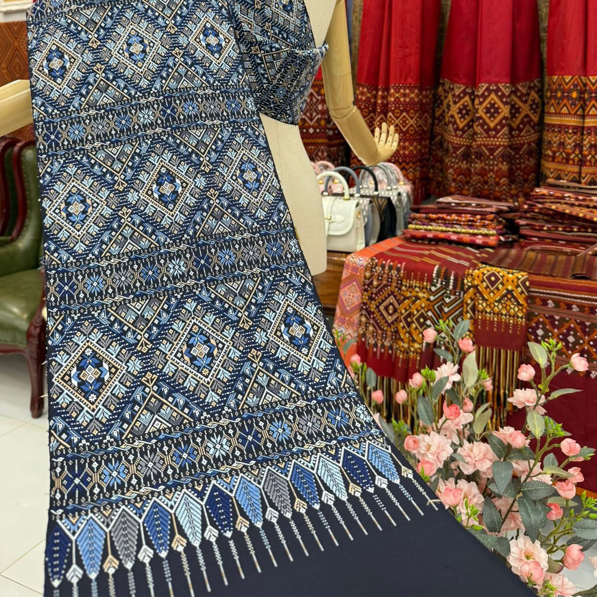 -ผืนนี้จกเกาะด้วยงานไหมสี่เส้นลายเด่นชัด