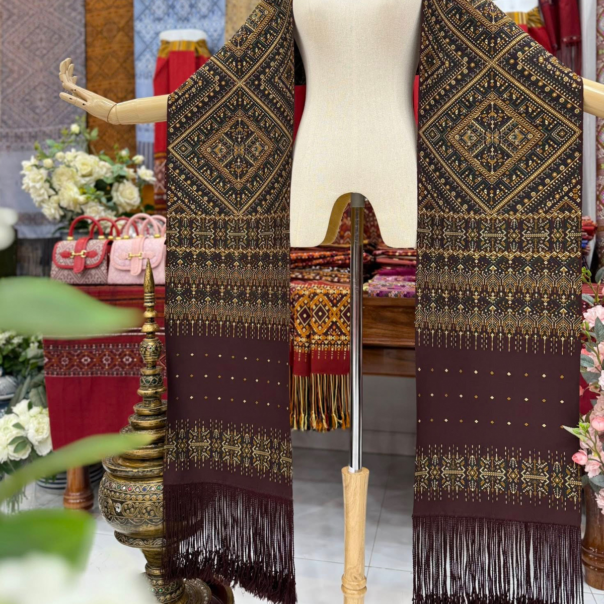 -ผืนนี้จกเกาะด้วยงานไหมสี่เส้นลายเด่นชัด