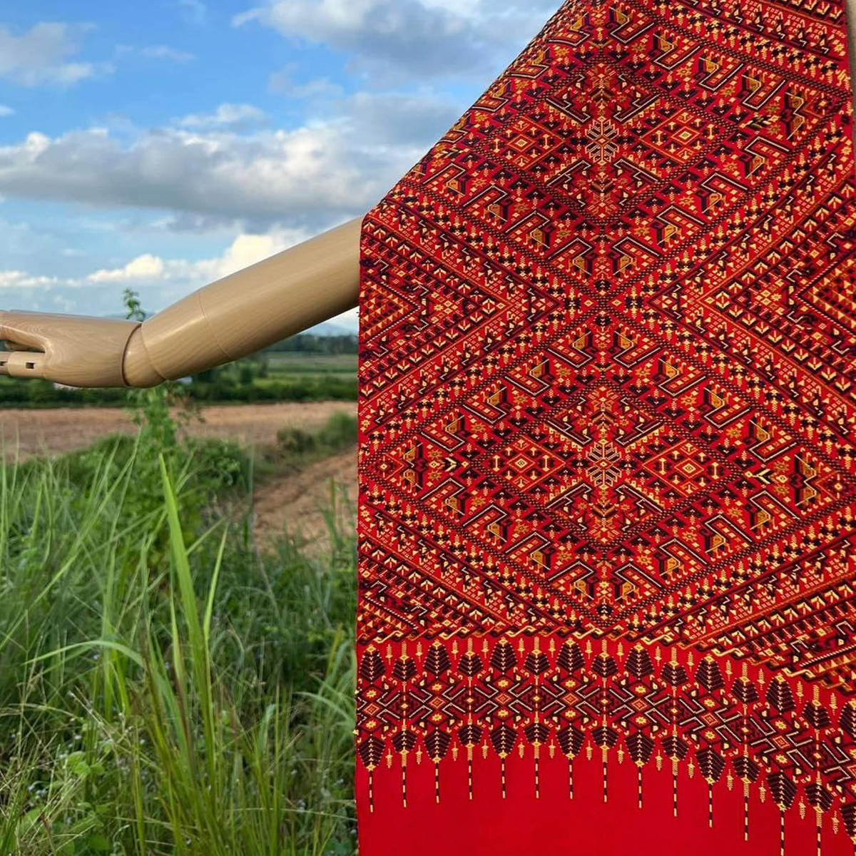 -ผืนนี้จกเกาะด้วยงานไหมสี่เส้นลายเด่นชัด