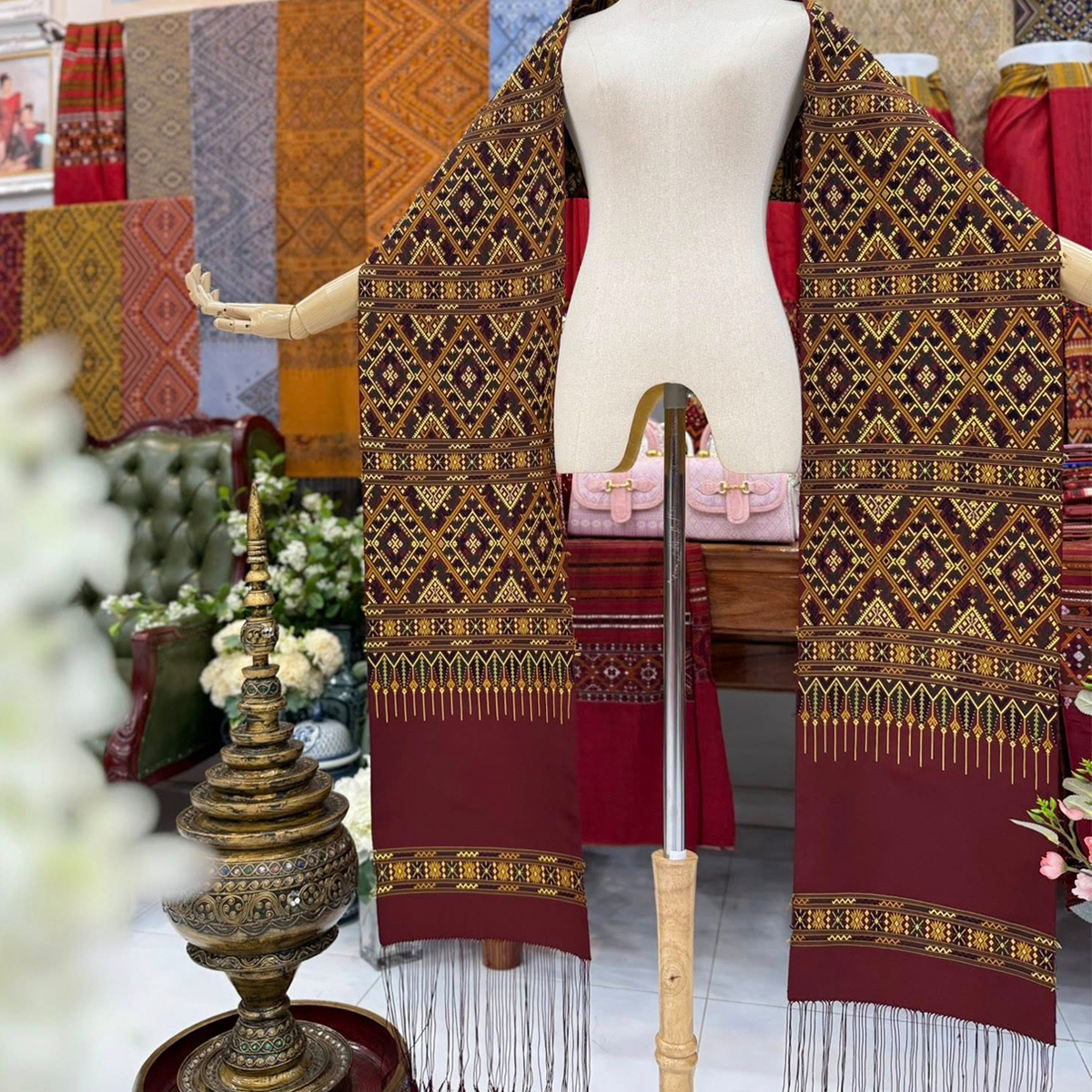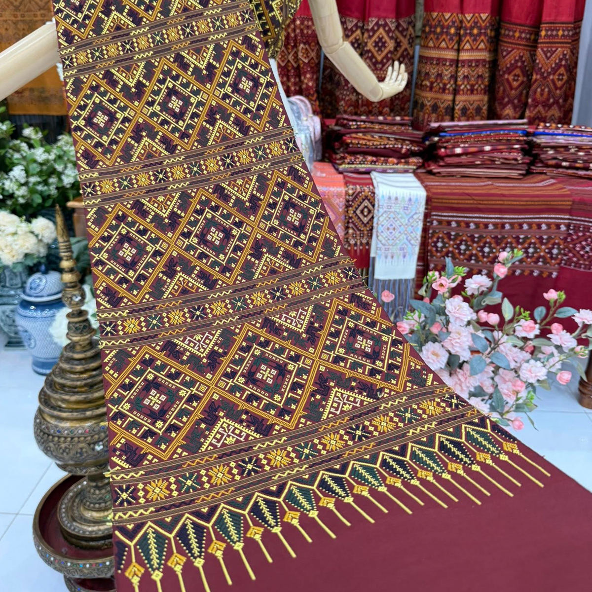 -ผืนนี้จกเกาะด้วยงานไหมสี่เส้นลายเด่นชัด