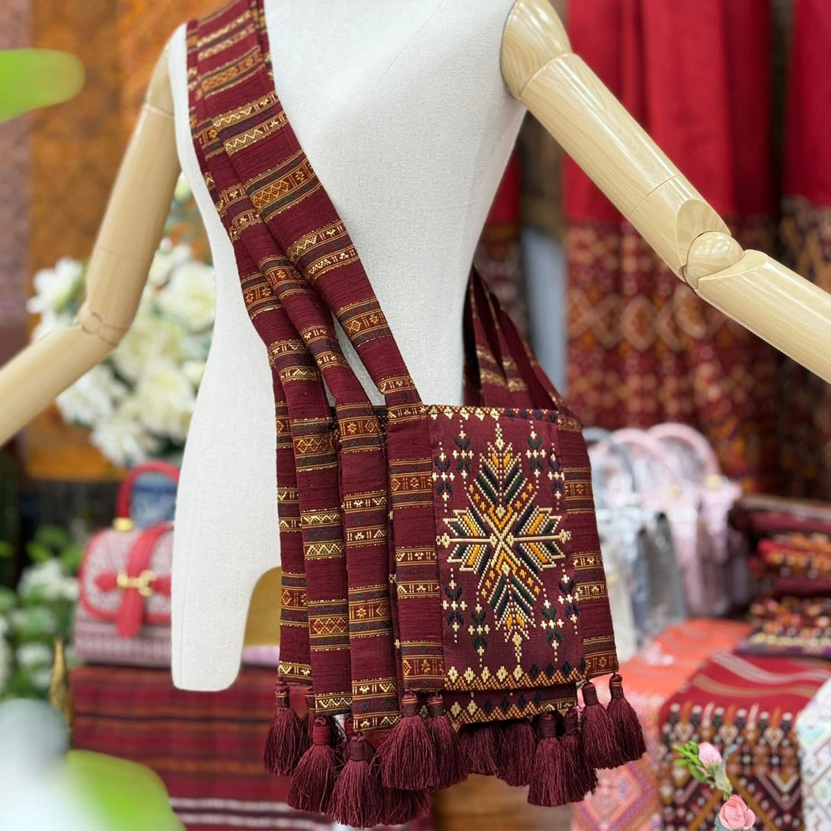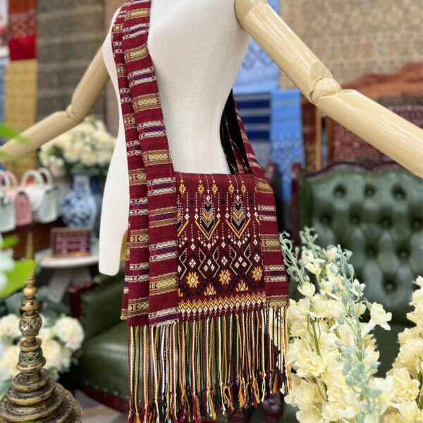 ย่ามไหมแพรวา โทนสีแดงก่ำ