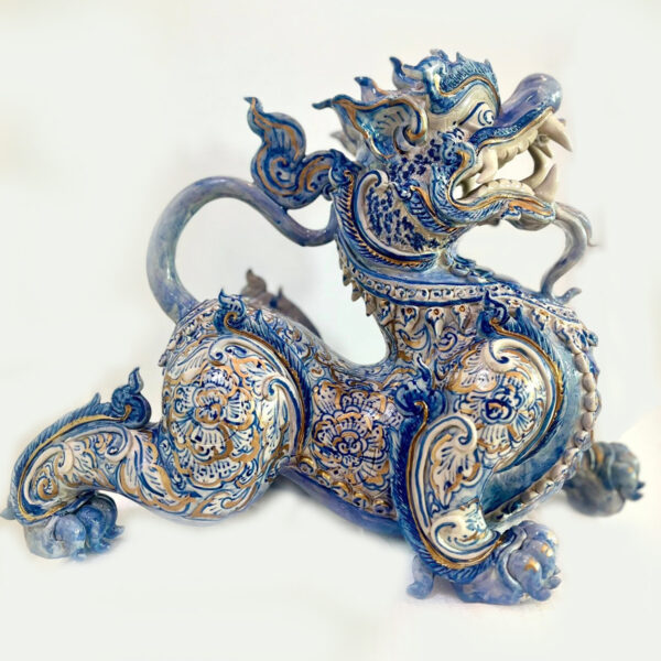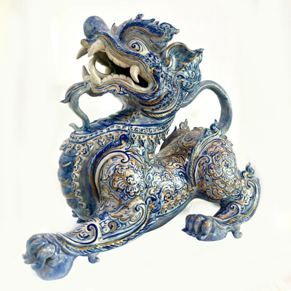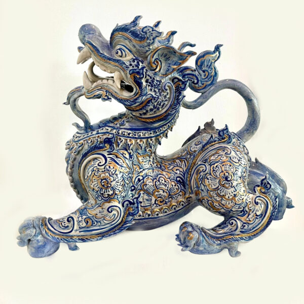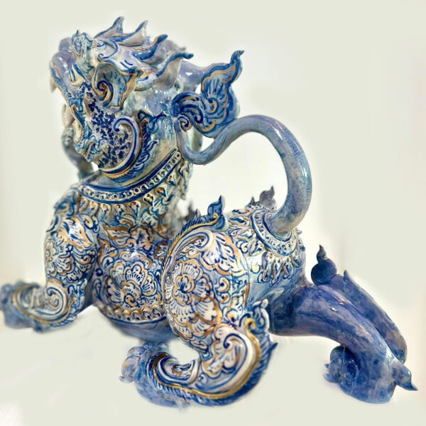 สิงห์สังคโลกโบราณ ลายดอกพุธตาล
