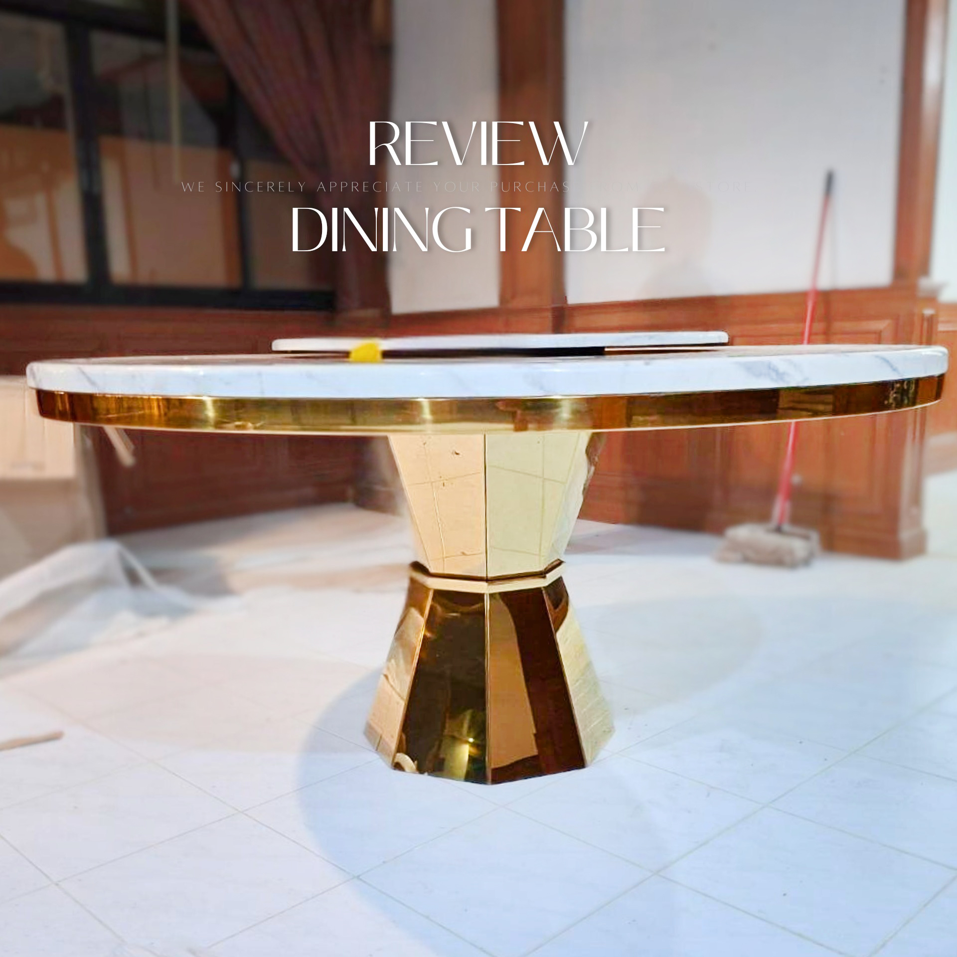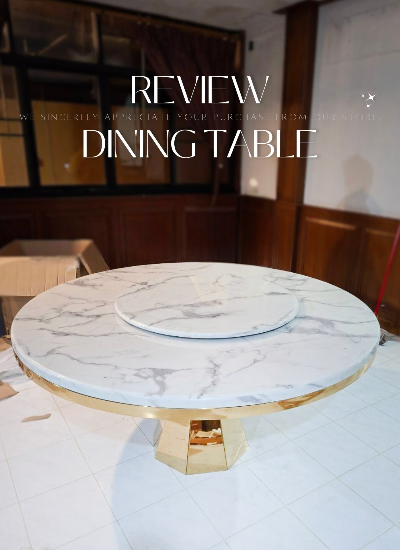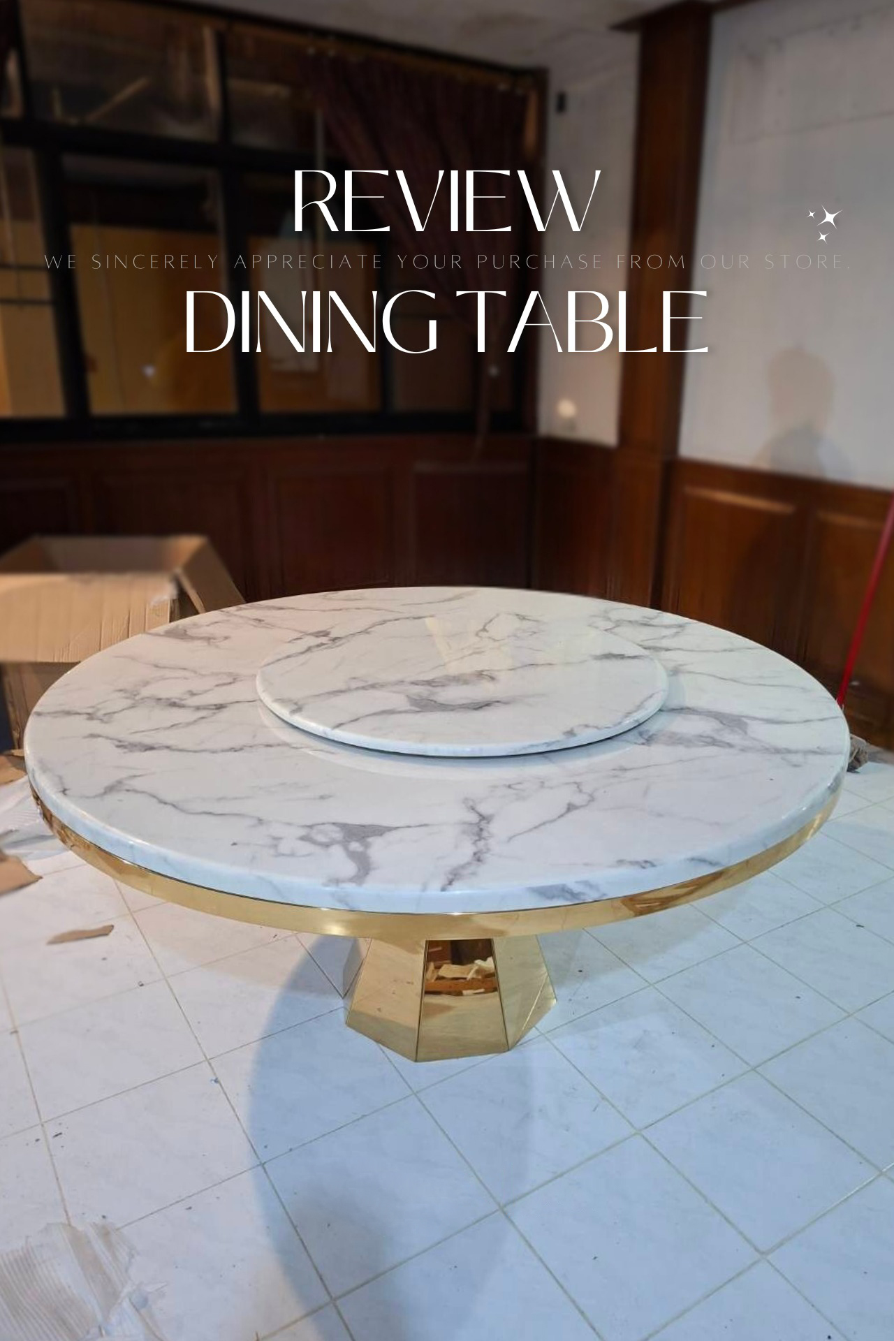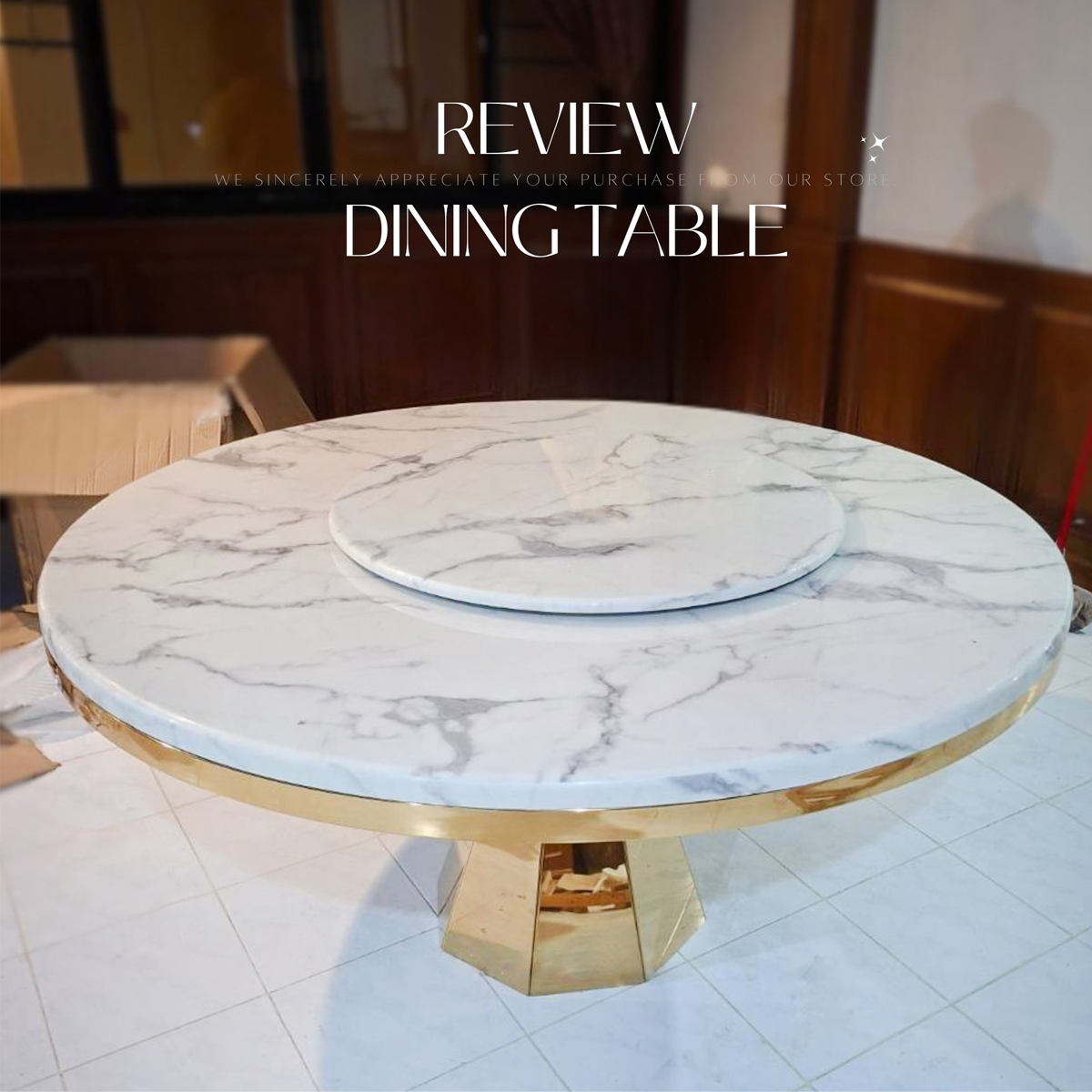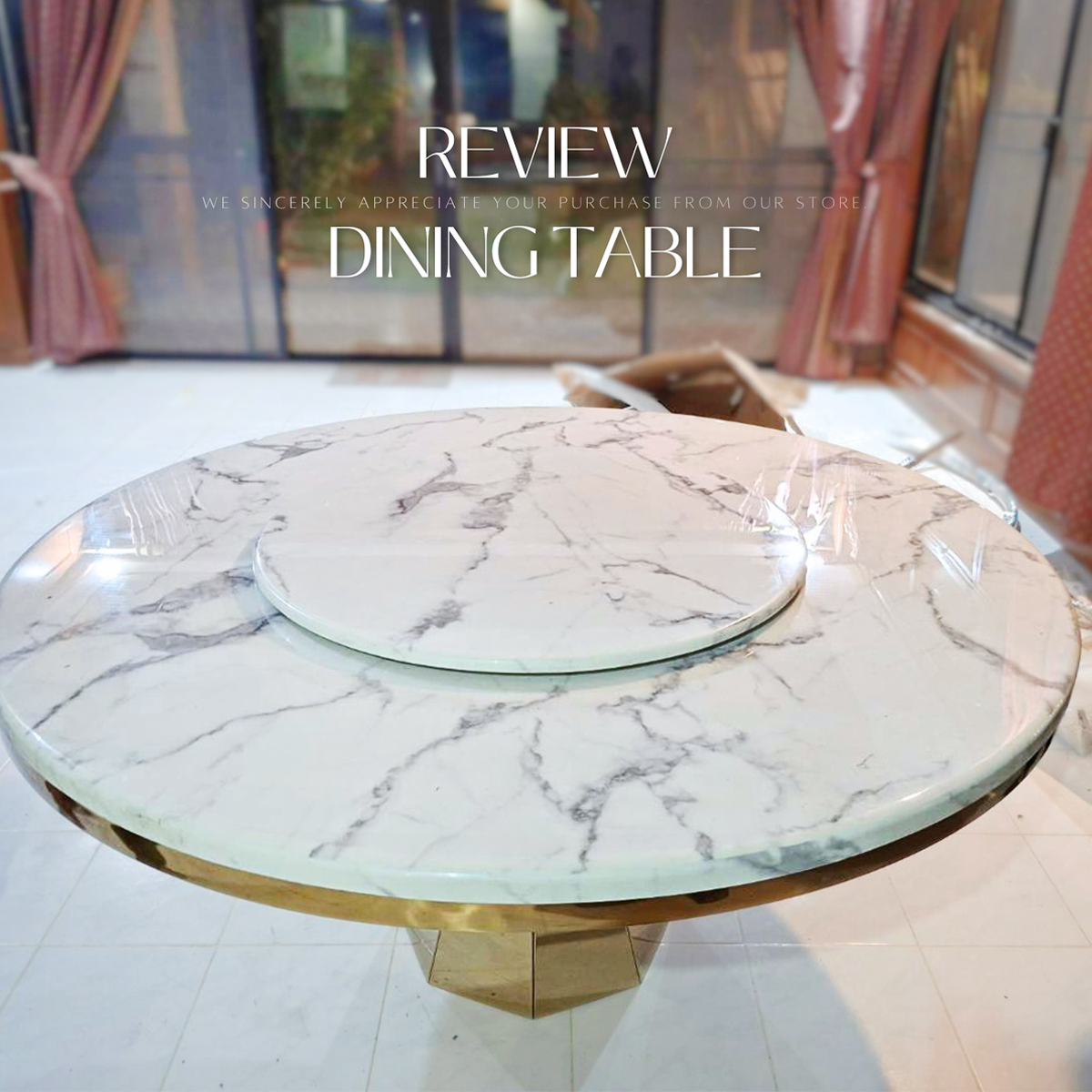 -ท็อปหินอ่อนสีขาวตกแต่งด้วยขาสีทอง แบบวงกลม