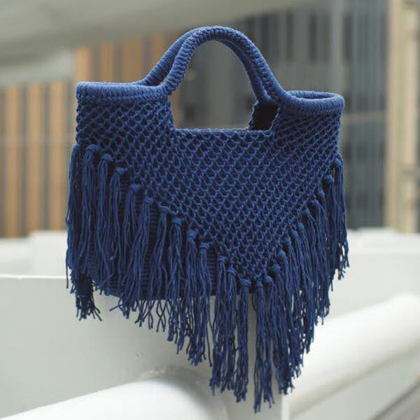 -ดีไซน์: ลายถักโครเชต์ + พู่ยาวรอบด้านล่าง สไตล์โบโฮ