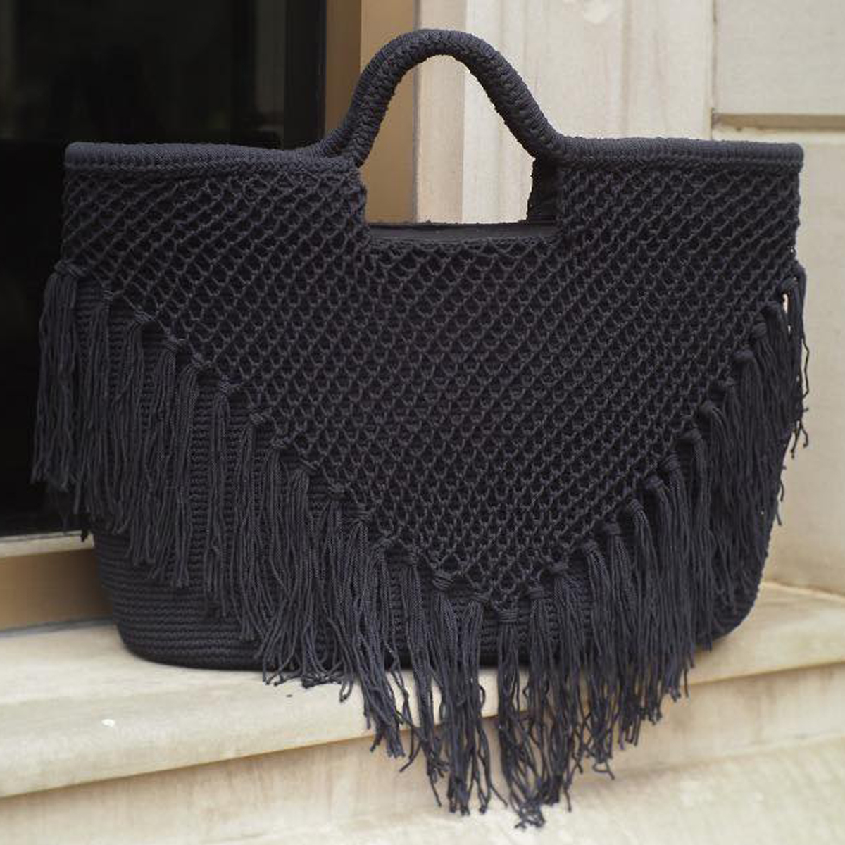 -ดีไซน์: ลายถักโครเชต์ + พู่ยาวรอบด้านล่าง สไตล์โบโฮ